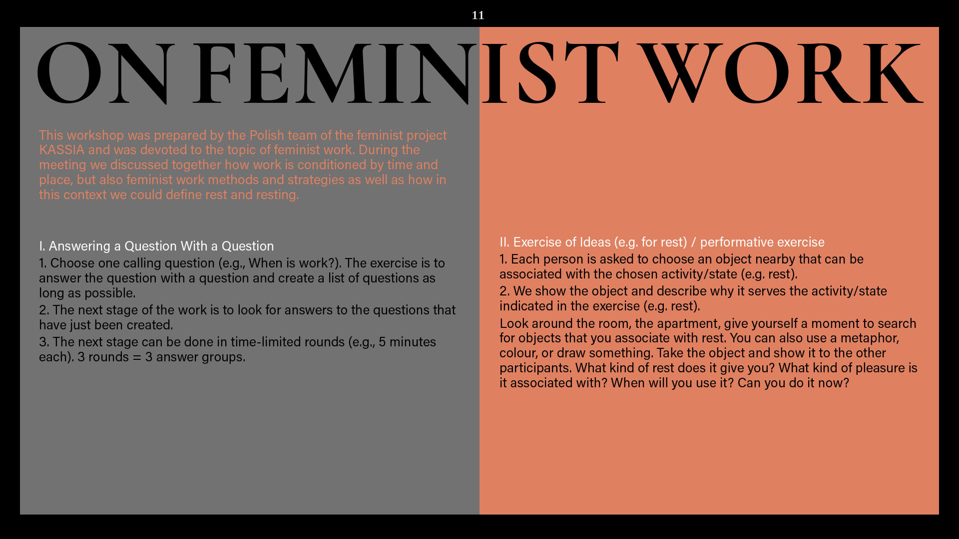 Róż: What actions/practices are most valuable for building a feminist tomorrow? / Jakie działania/praktyki są najcenniejsze do budowania feministycznego jutra? Ania: It's hard for me to answer that question because there are no practices that will work in all circumstances. But there are practices which can be very powerful in a specific place, time, circumstances, for specific groups and people (human and non-human). Tonight I am exhausted and it seems to me that during KASSIA the closest I came to the feminism of the future was when we tried to work together on strategies for resting and experiencing pleasure. I still don't know how to do it, I feel guilty when I rest and my precarious situation mostly doesn't allow it. Maybe that's why I think care - for myself and others - is a knotty issue for the feminism of the future.