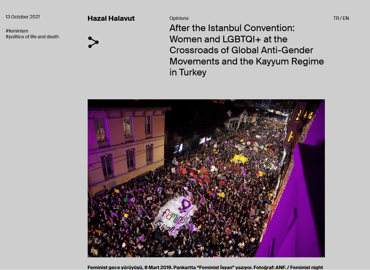 L’Internationale Online, article written by Hazal Havalut: 'After the Istanbul Convention: Women and LGBTQI+ at the Crossroads of Global Anti-Gender Movements and the Kayyum Regime in Turkey'
